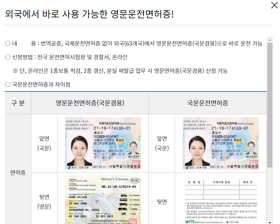 갱신, 재발급, 신규 신청 시: 영문, 국문 15,000원
