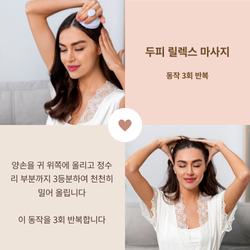 모든 마사지는 하루 1-2회, 각 부위당 3-5분씩 실시하는 것이 좋습니다. 마사지 후에는 두피가 진정될 수 있도록 잠시 휴식을 취해주세요.